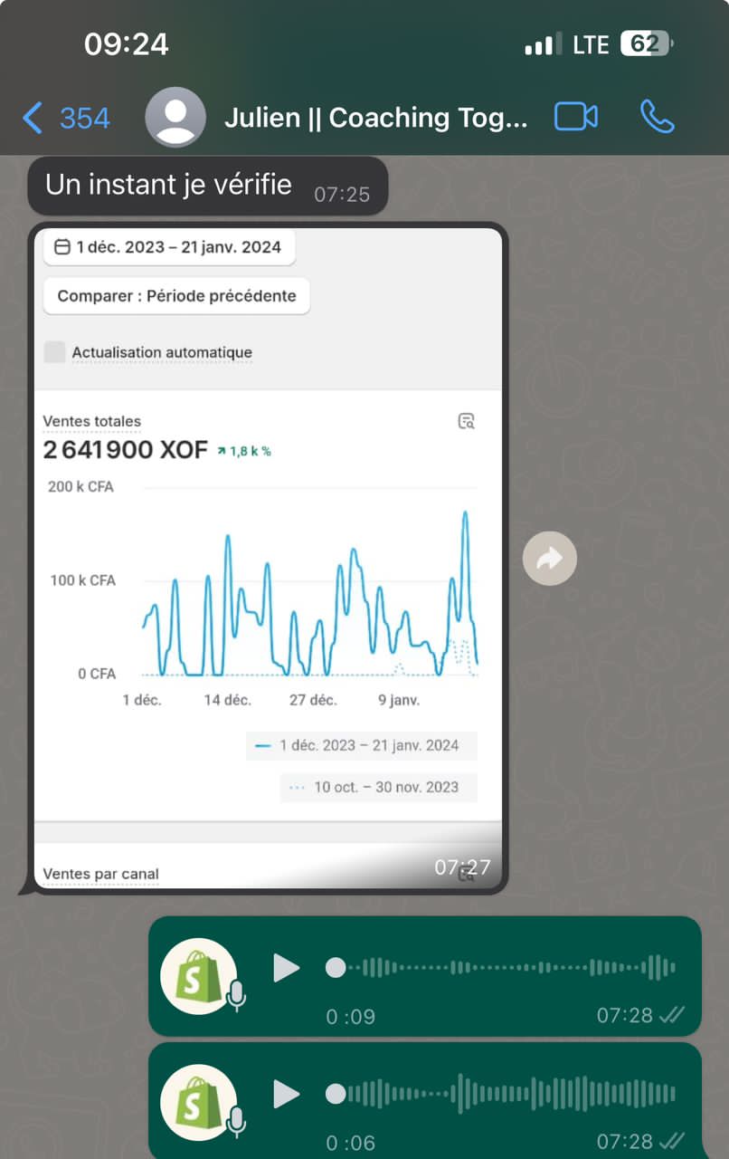 Avertissement : Il est important de comprendre que les résultats mentionnés ici sont atypiques et ne garantissent en aucun cas que vous obtiendrez les mêmes succès. Ces témoignages reflètent les expériences individuelles de ces utilisateurs et ne sont pas représentatifs de tous les utilisateurs du programme ECOM MASTERY ACADEMY. Le succès en E-commerce, comme dans n'importe quel domaine d'entreprise, requiert du dévouement, du travail, de la connaissance, et divers facteurs personnels et professionnels.